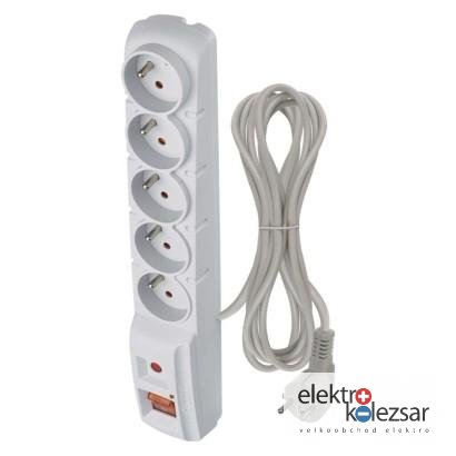 Přepěťová ochrana – 5 zásuvek, 3m, šedá (1 ks)