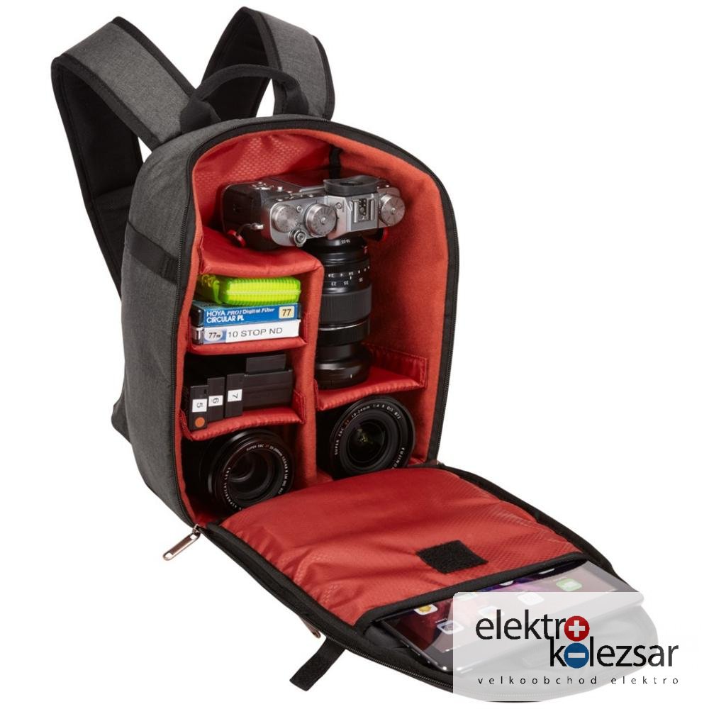 - Snadný přístup k fotoaparátu nebo tabletu shora přes dvou jezdcový zip bez nutnosti otevírat celý batoh.
