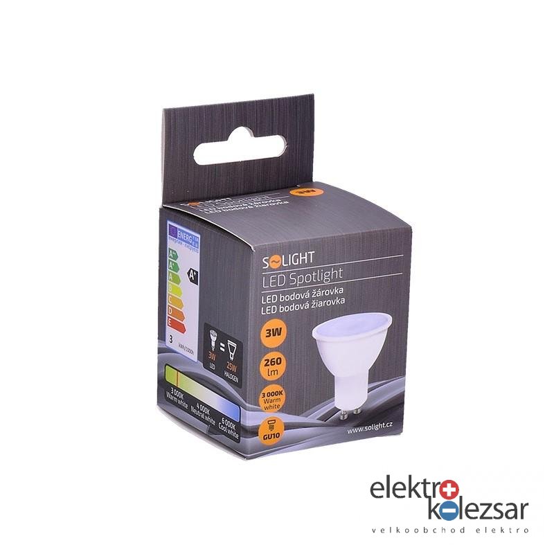 Solight LED žárovka, bodová , 3W, GU10, 3000K, 260lm, bílá