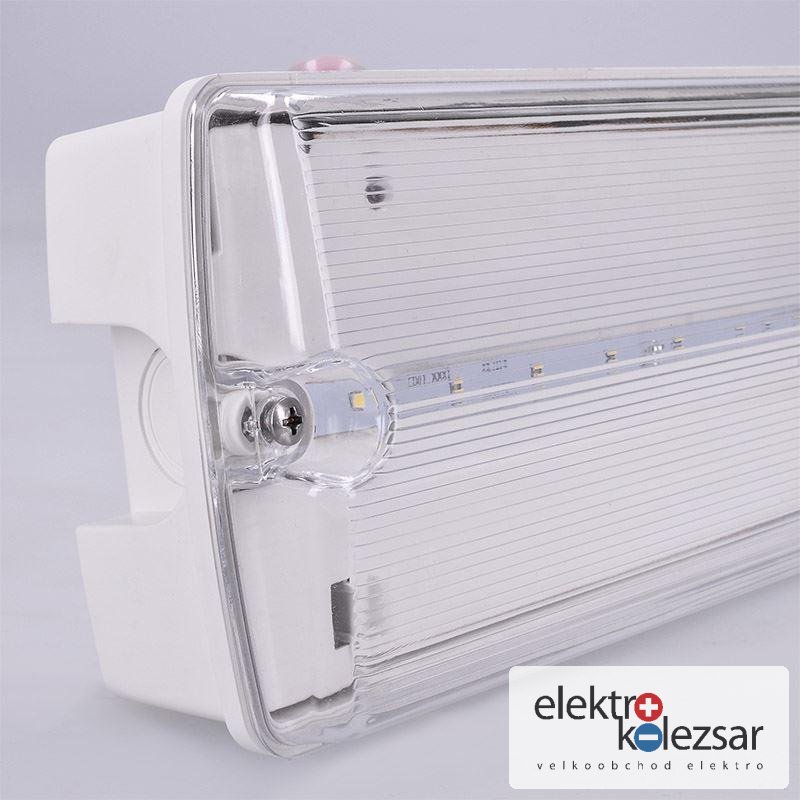 Nouzové LED svítidlo s výkonem 3,2 W je určeno pro bezpečné označení únikových cest i v náročných podmínkách. Poskytuje světelný tok 175 lm (145 lm v pohotovostním režimu) a je vybaveno baterií NiCd 3,6V 800mAh s výdrží min. 3 hodiny. Samozřejmostí je testovací tlačítko a sada nalepovacích piktogramů pro různé směry úniku.