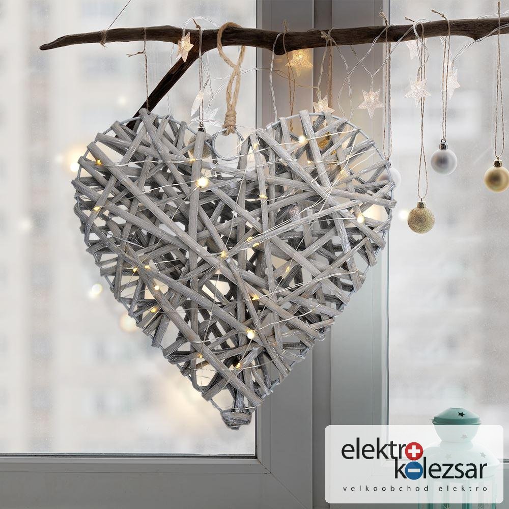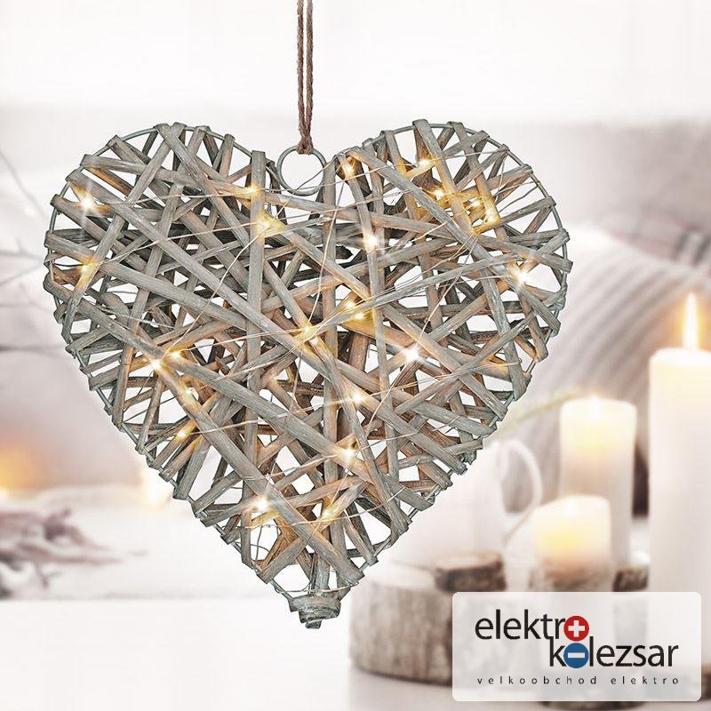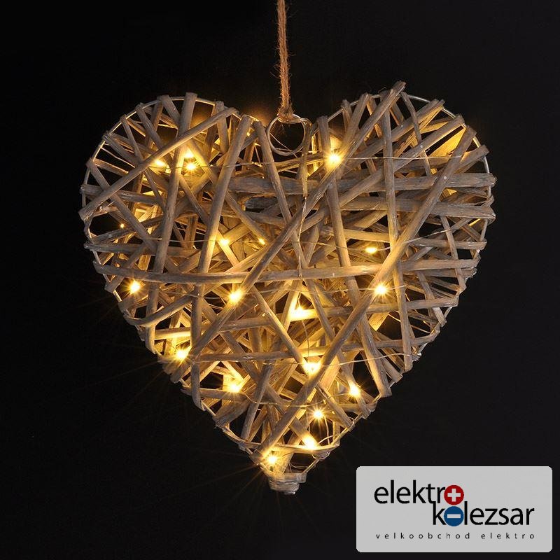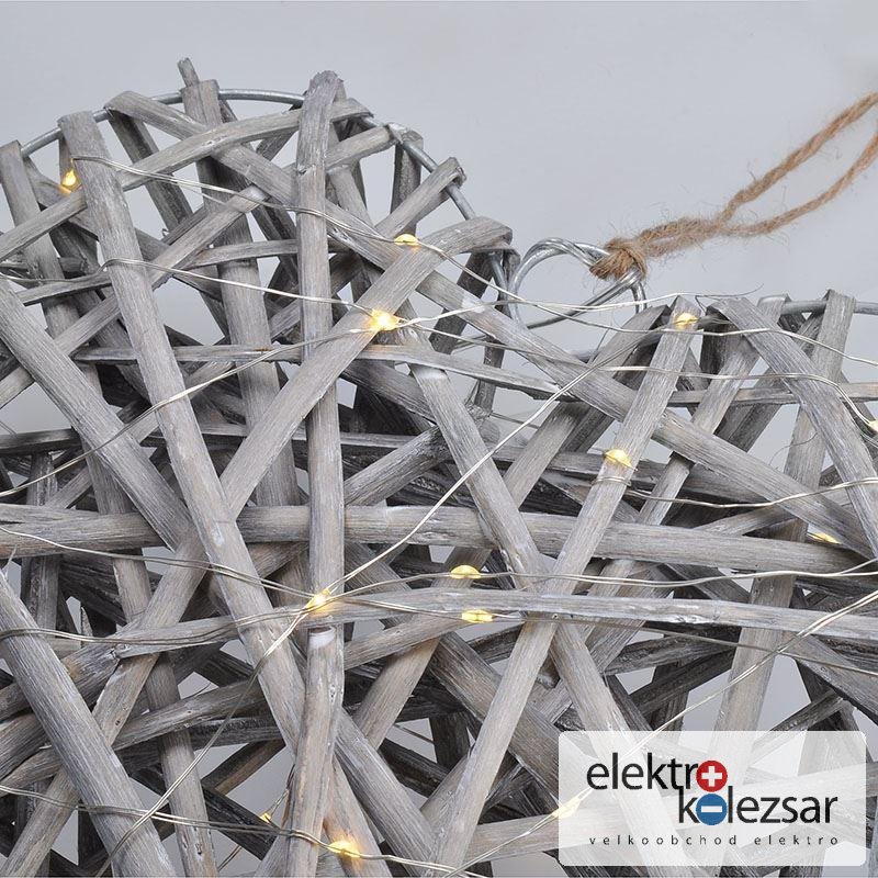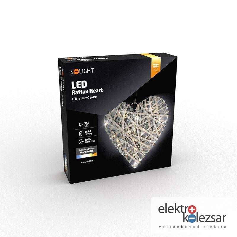 Solight LED ratanové srdce, 30x LED, 2x AA, 30cm