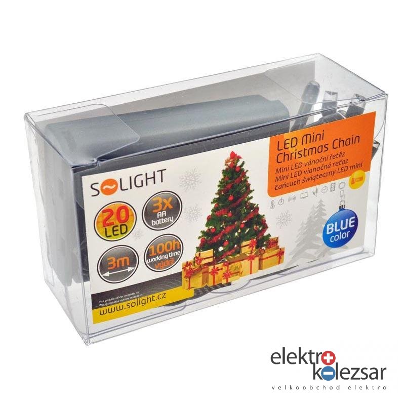 Solight LED vánoční řetěz, 3m, 20xLED, 3x AA, modré světlo, zelený kabel