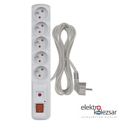 Přepěťová ochrana – 5 zásuvek, 3m, šedá (1 ks)