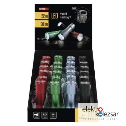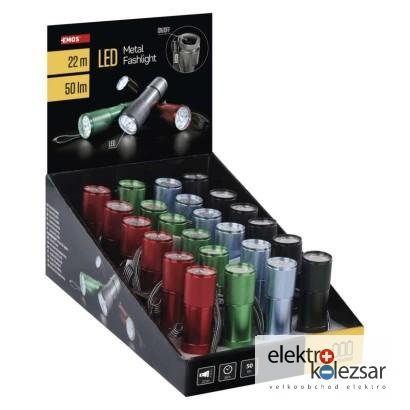 LED ruční kovová svítilna P3848A, 50 lm, 3× AAA, 24 ks, display box (24 ks)