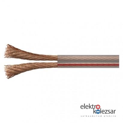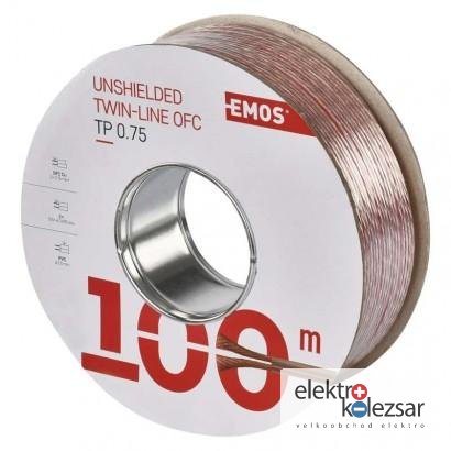 barva izolace vnitřních vodičů: není|barva pláště: průhledná, průhledná|dvojitá izolace: ne|materiál pláště: PVC|materiál vnitřního vodiče: OFC měď (Cu)|materiál vodičů stínění: není|maximální provozní napětí: 50 V|počet drátků stínění: není|předpokládané použití: propojení reproduktorů|prodejní obal: 100 m, cívka|průměr vnitřního vodiče: 105× 0,095 mm|průřez drátků stínění: není|průřez vodiče: 0,75 mm²|stínění: ne|typové označení: SP075/TP|vnější izolace: 2× 2,5 mm|záruční doba: 5 let|způsob balení - délka: 100 m