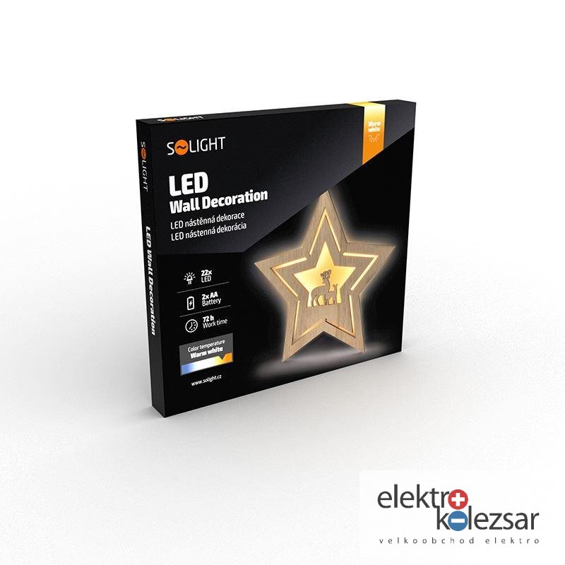Solight LED nástěnná dekorace vánoční hvězda, 24x LED, 2x AA