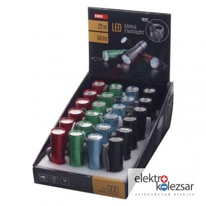 LED ruční kovová svítilna P3848A, 50 lm, 3× AAA, 24 ks, display box (24 ks)