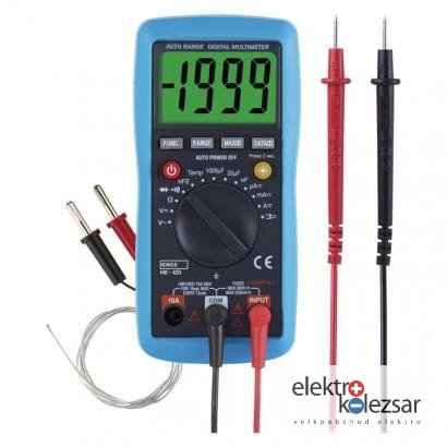 AC napětí: 2–300 V|AC proud: 200 µA – 10 A / s kleštěmi až 1 000 A (nejsou součástí dodávky)|automatické vypnutí: ano|bezkontaktní detekce AC napětí: ne|DC napětí: 200 mV – 300 V|DC proud: 200 µA – 10 A / s kleštěmi až 1 000 A (nejsou součástí dodávky)|elektrický odpor: 200 Ohm – 20 MOhm|indikace slabé baterie: ano|klešťový multimetr: ne|kontaktní detekce AC napětí: ne|měření teploty: -20 °C až +1 000 °C|napájení: 3× 1,5 V AAA (součástí balení)|podsvícení displeje: ano|prodejní obal: 1 ks, blistr|rozměr: 35 × 75 × 158 mm|součást dodávky: baterie, měřicí hroty, redukce pro měření tranzistorů, tepl. sonda typu K, zámek pro kryt baterie|spojitost obvodů: ano|test baterií: ne|test diod: ano|test tranzistorů: ano|volba rozsahu: automatická|záznam max. hodnoty: ano|záznam naměřené hodnoty: ano|zobrazení displeje: 3,5 digit
