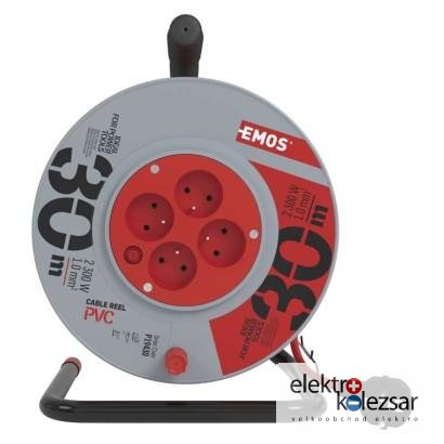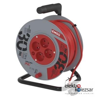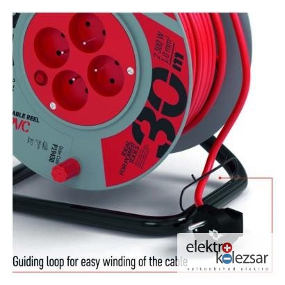 barva kabelu: červená|další funkce: vodící oko, brzda cívky|délka: 30 m|dětské clonky: ne|hmotnost: neuvádí se|krytí: IP20|max. zatížení navinutého: 4,8 A max./1 100 W|max. zatížení rozvinutého: 10 A max./2 300 W|napětí: 230 V~|počet zásuvek: 4|prodejní obal: 1 ks, krabice|produkt: buben s pohyblivým středem|proud: 10 A|průřez vodiče: 1,0 mm²|rozměr: 240 mm|tepelná pojistka: ano|typ izolace: PVC|vodič: H05VV-F3G|záruční doba: 2 roky