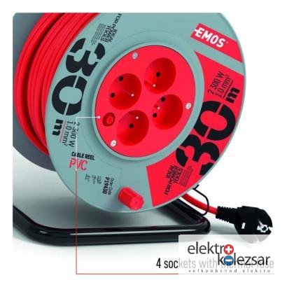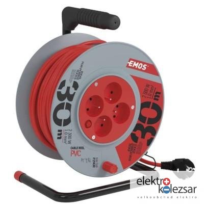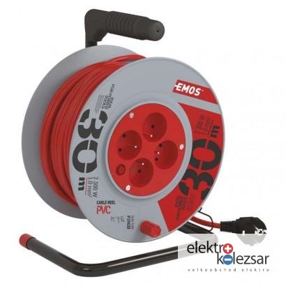Prodlužovací kabel na bubnu 30 m / 4 zásuvky / červený / PVC / 230 V / 1 mm2 (1 ks)
