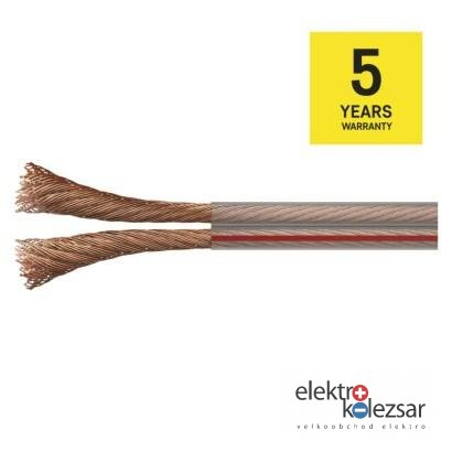 barva izolace vnitřních vodičů: není|barva pláště: průhledná, průhledná|dvojitá izolace: ne|materiál pláště: PVC|materiál vnitřního vodiče: OFC měď (Cu)|materiál vodičů stínění: není|maximální provozní napětí: 50 V|počet drátků stínění: není|předpokládané použití: propojení reproduktorů|prodejní obal: 100 m, cívka|průměr vnitřního vodiče: 105× 0,095 mm|průřez drátků stínění: není|průřez vodiče: 0,75 mm²|stínění: ne|typové označení: SP075/TP|vnější izolace: 2× 2,5 mm|záruční doba: 5 let|způsob balení - délka: 100 m