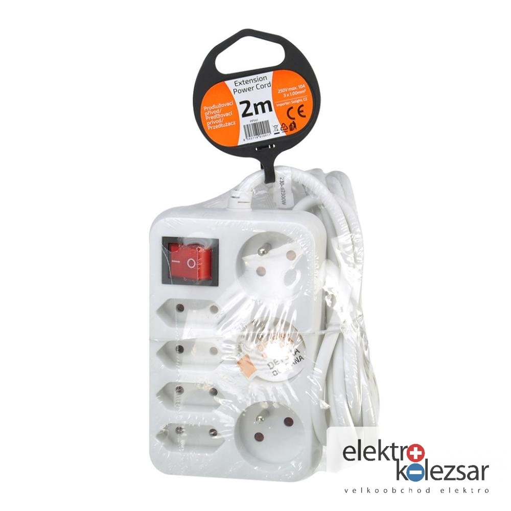Solight prodlužovací přívod, 7 zásuvek, bílý, vypínač, 2m