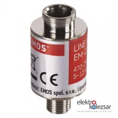 5G filtr: ne|frekvenční rozsah: 470–790 MHz|izolace mezi vstupy: neuvádí se|konektory: F konektor|krytí: IP45|LTE filtr: ano|maximální úroveň signálu na výstupu: 104 dBµV|napájení: 5–12 V DC, 65 mA|počet vstupů: 1|počet výstupů: 1|potlačené pásmo: 790–2 200 MHz|prodejní obal: 1 ks, headercard|produkt: stíněný linkový zesilovač|průchozí pro stejnosměrné napájení předzesilovačů: ne|regulace zisku: ne|rozměr: 20 × 42 mm|rozteč děr: neuvádí se|šumové číslo: <2,0 dB|útlum v potlačeném pásmu: neuvádí se|vstupy: F konektor|zesílení: 20 dB