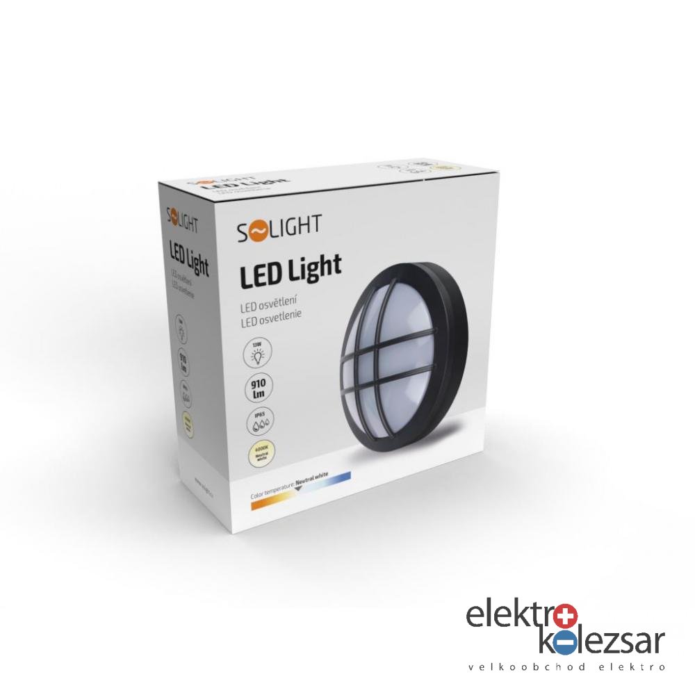 Solight LED venkovní osvětlení kulaté s mřížkou, 13W, 910lm, 4000K, IP65, 17cm, černá