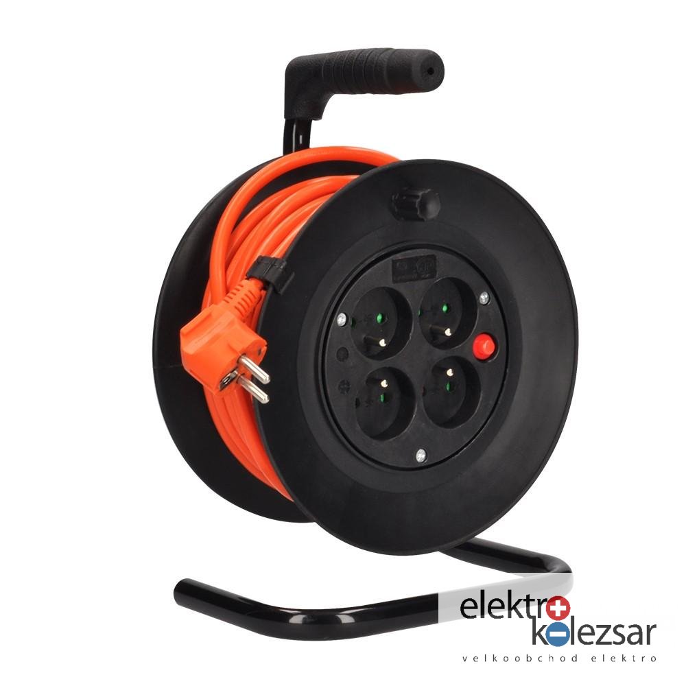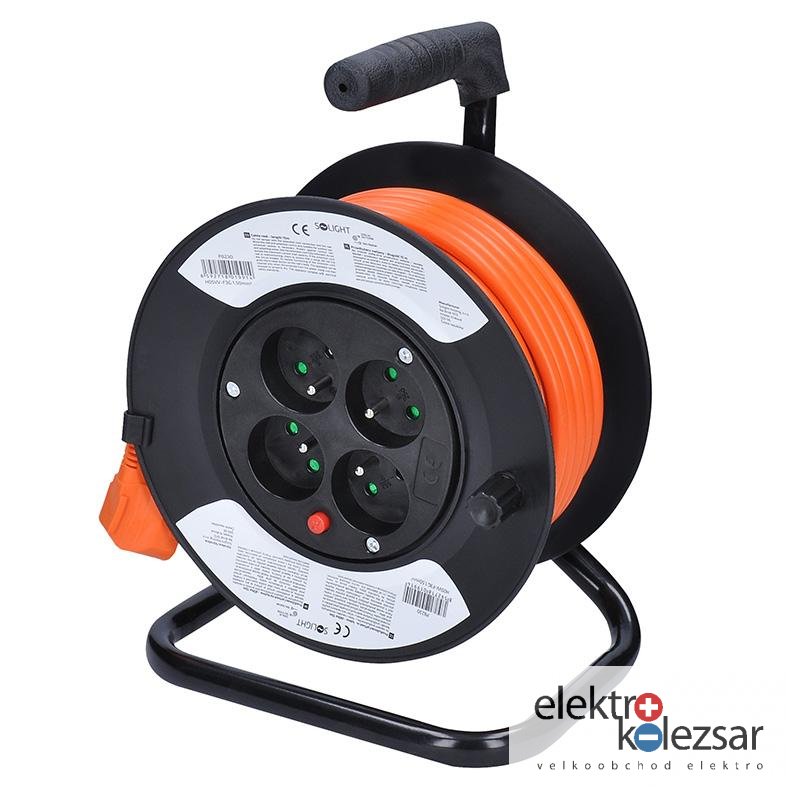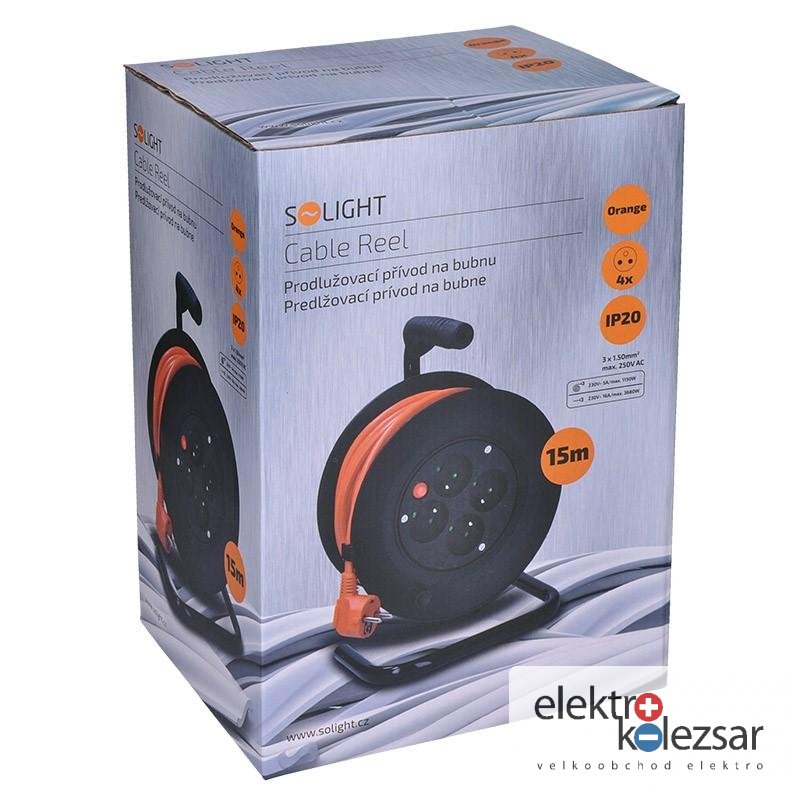 Solight prodlužovací přívod na bubnu, 4 zásuvky, 15m, oranžový kabel, 3x 1,5mm2