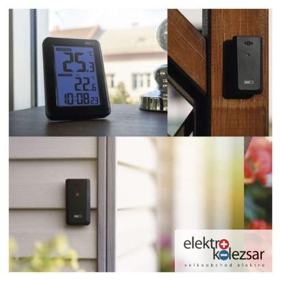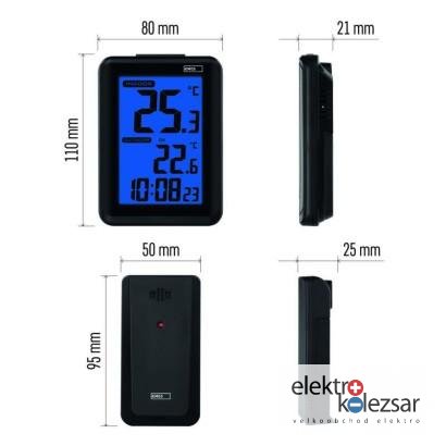 Bezdrátový teploměr se zobrazením venkovní a vnitřní teploty. Teploměr má bezdrátové čidlo s dosahem až 50 m.